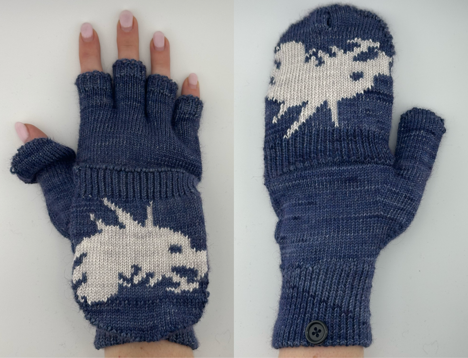 Experience versatility and elegance with our SilkPaca Convertible Mitts, crafted from luxurious hand-dyed SilkPaca Fingering yarn. Designed with a flip-top and convenient button closure, these mitts effortlessly switch between fingerless gloves and full coverage warmth. The thumb hole ensures a comfortable fit while allowing freedom of movement. Perfect for chilly days when you need flexibility without sacrificing style and softness.